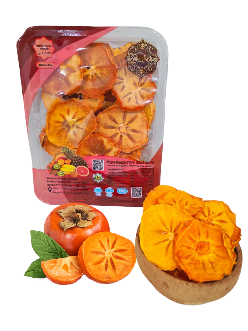 Sultan Pasha dried Persimmon is carefully selected from the finest and highest-quality Persimmon and processed using modern drying technologies to preserve its natural flavor, color, and nutritional value. This product is healthy and free from any artificial additives, preservatives, or added sugar, making it a pure and wholesome food choice.