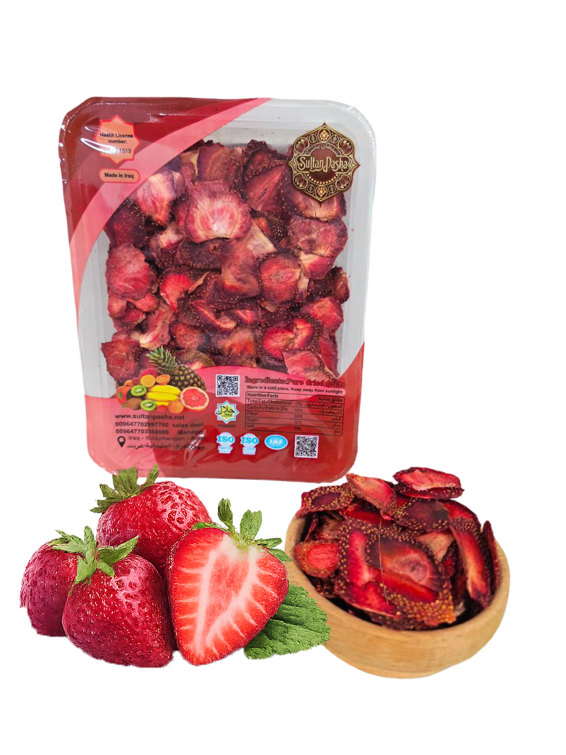 Sultan Pasha dried Strawberry is carefully selected from the finest and highest-quality Strawberry and processed using modern drying technologies to preserve its natural flavor, color, and nutritional value. This product is healthy and free from any artificial additives, preservatives, or added sugar, making it a pure and wholesome food choice.