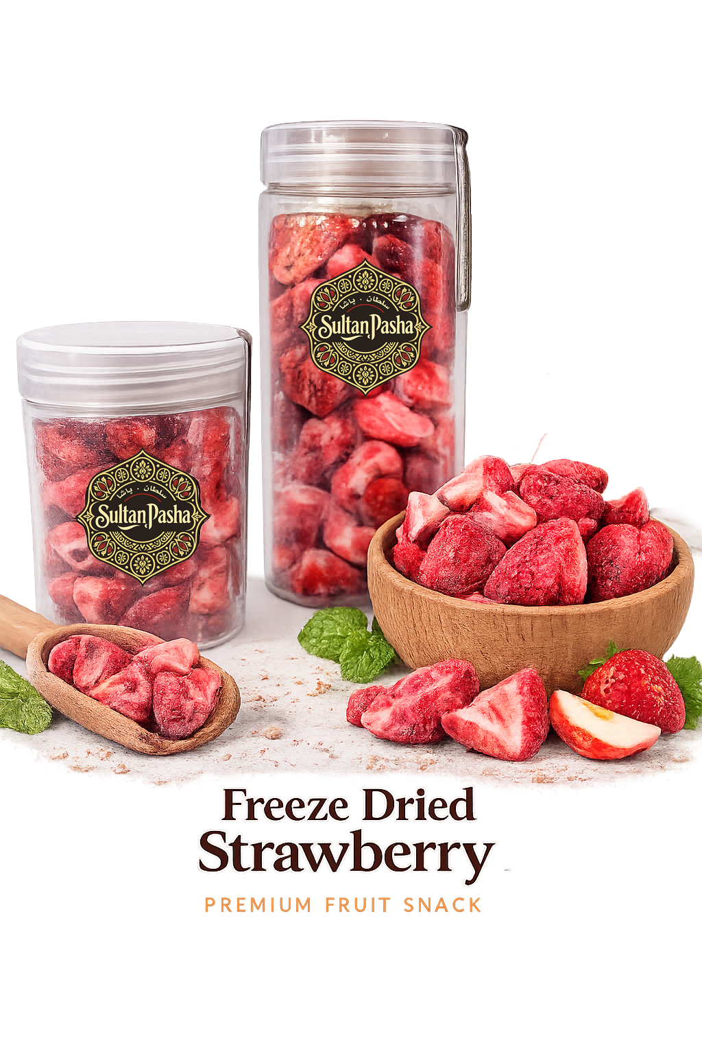 With its rich aroma and naturally sweet taste, Sultan Pasha Freeze dried Strawberry is an excellent choice for daily consumption, healthy snacking, mixing, and use in a wide range of food applications.