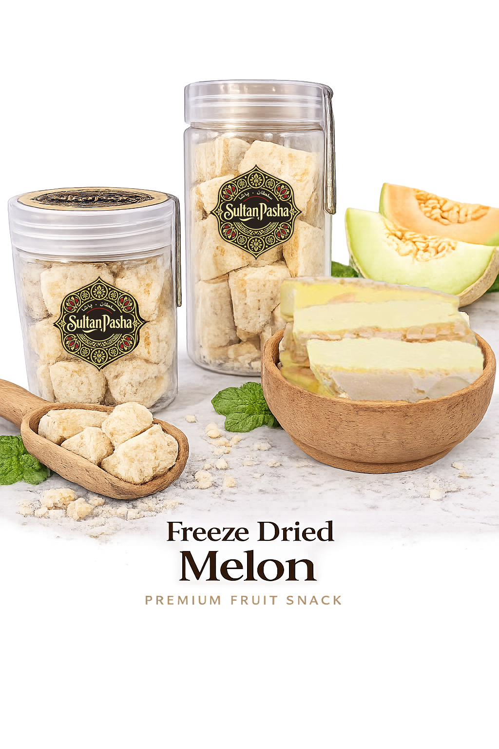 Sultan Pasha Freeze dried Melon is carefully selected from the finest and highest-quality Melon and processed using modern drying technologies to preserve its natural flavor, color, and nutritional value. This product is healthy and free from any artificial additives, preservatives, or added sugar, making it a pure and wholesome food choice.